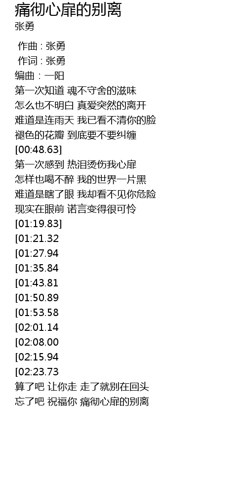 | [00:00.000] | zuò qǔ : zhāng yǒng |