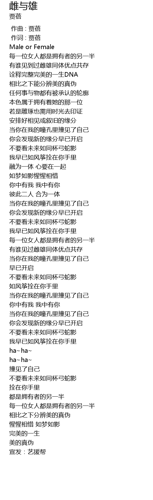 | [00:20.52] | 有谁见到过雌雄同体优点共存 |