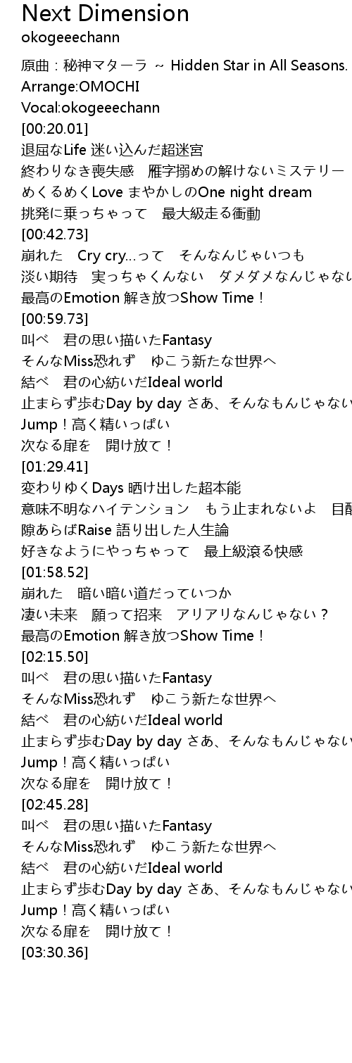 | [00:33.03] | めくるめくLove まやかしのOne night dream |