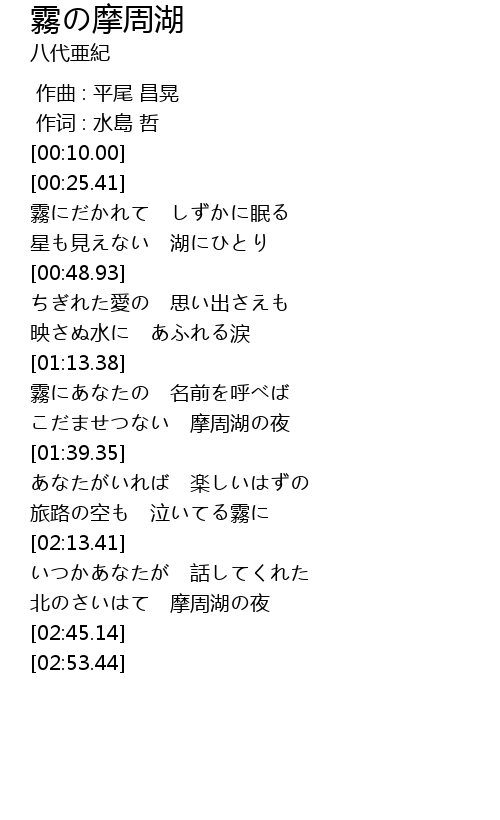 | [01:25.06] | こだませつない 摩周湖の夜 |