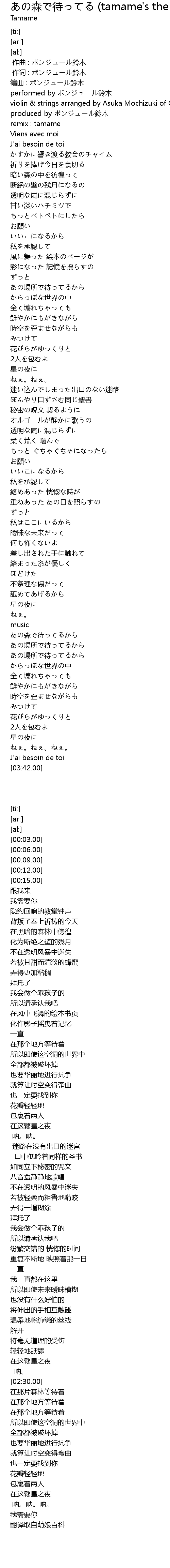| [00:03.00] | 编曲 : ボンジュール鈴木 |