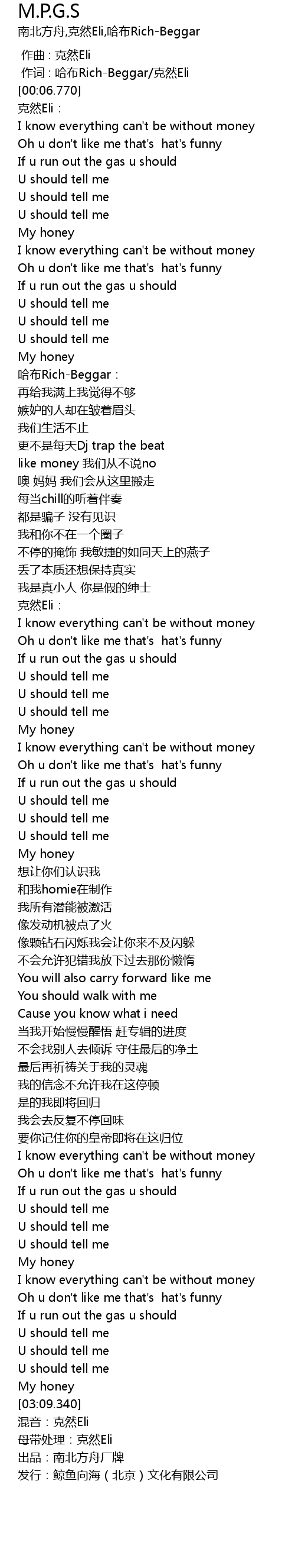 | [00:01.000] | 作词 : 哈布Rich-Beggar/克然Eli |
