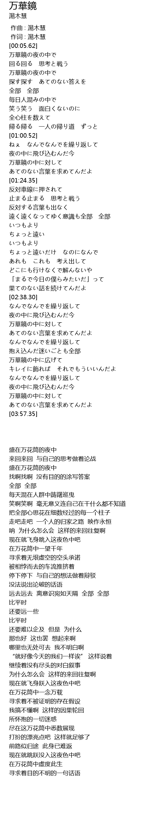 | [03:45.92] | wàn huá jìng zhōng duì |