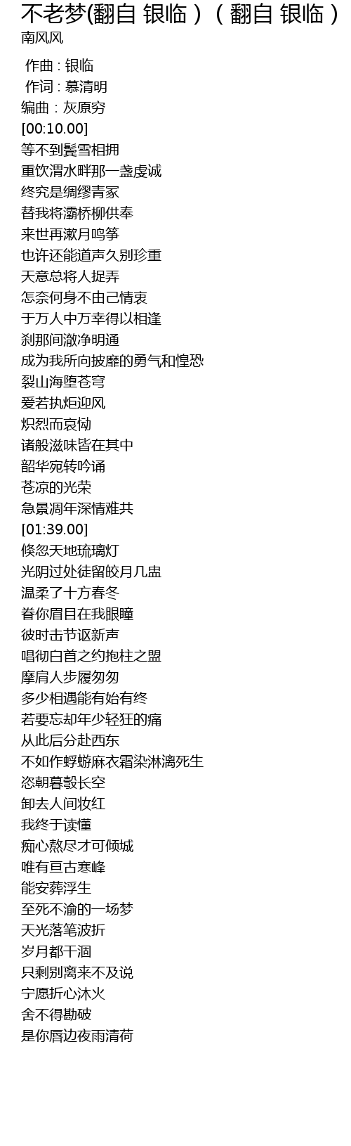 | [02:46.18] | 不如作蜉蝣麻衣霜染淋漓死生 |