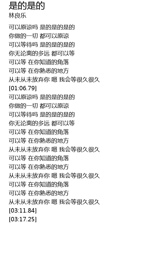 | [00:14.32] | 可以原谅吗 是的是的是的 |