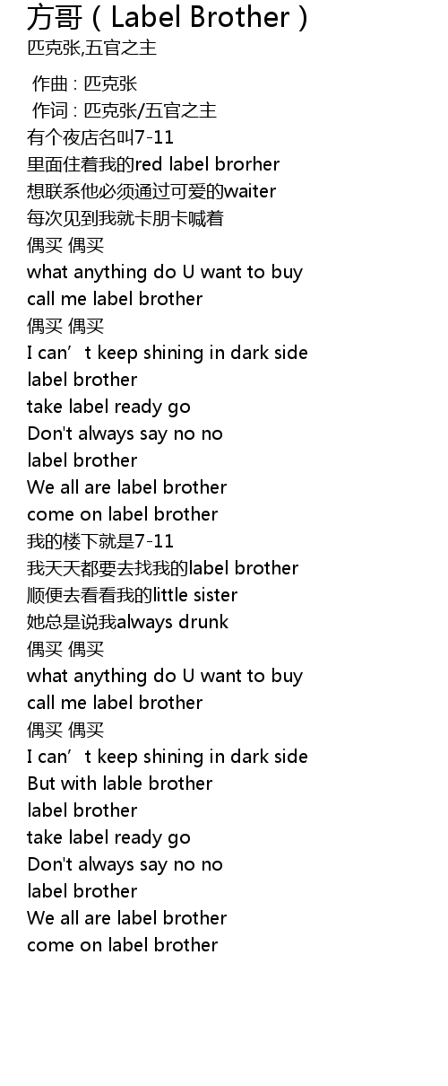 | [00:41.226] | li mian zhu zhe wo de red label brorher |