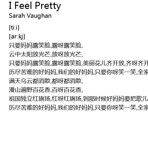 | [00:19.89] | 只要妈妈露笑脸,露呀露笑脸,美丽花儿齐开放,齐呀齐开放. |