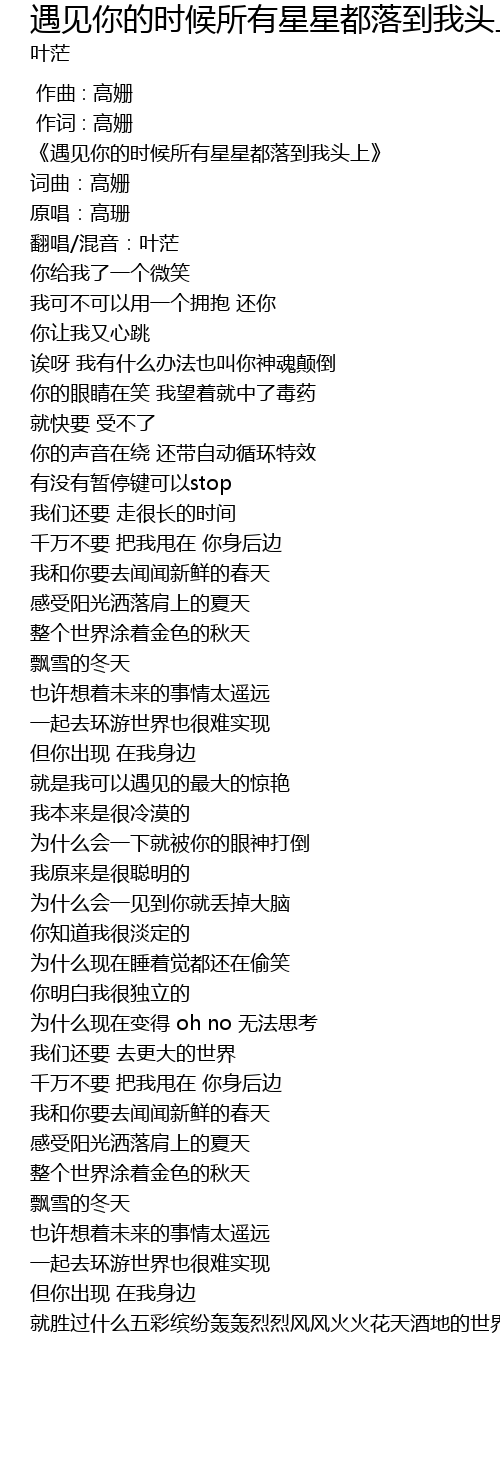 | [00:02.000] | 《遇见你的时候所有星星都落到我头上》 |