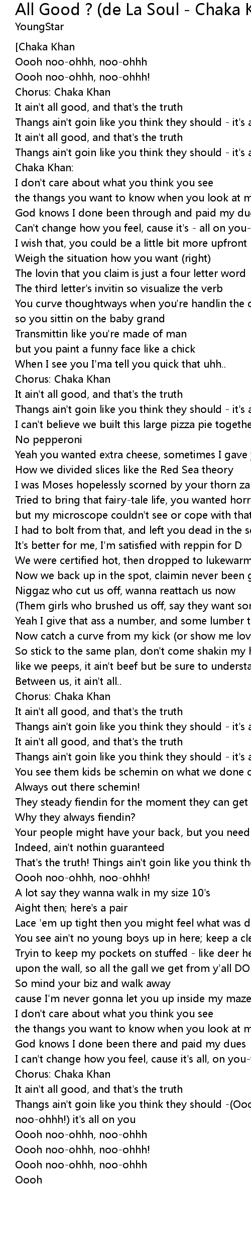 It ain't all good, and that's the truth |