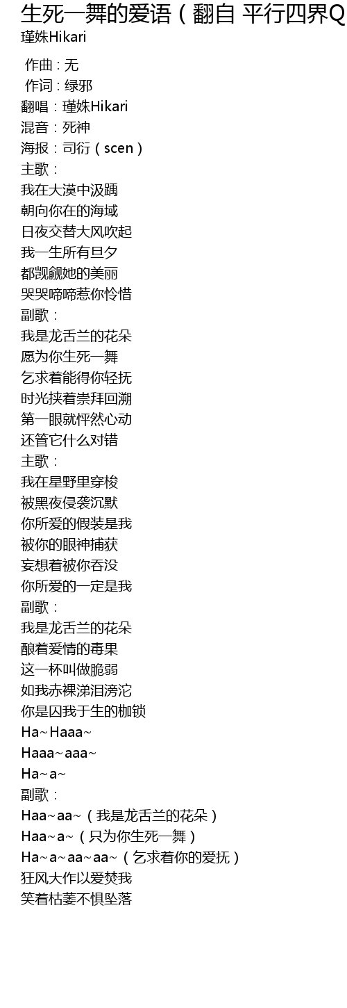 | [03:01.348] | Haa~a~(只为你生死一舞) |