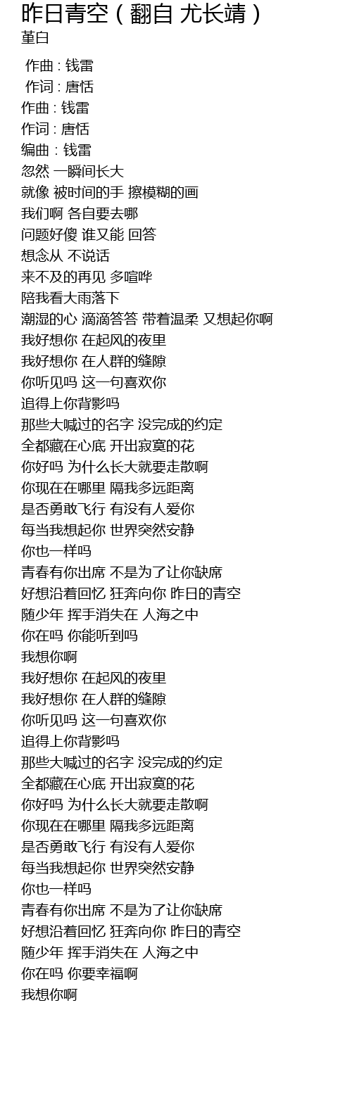 | [01:49.369] | 好想沿着回忆 狂奔向你 昨日的青空 |