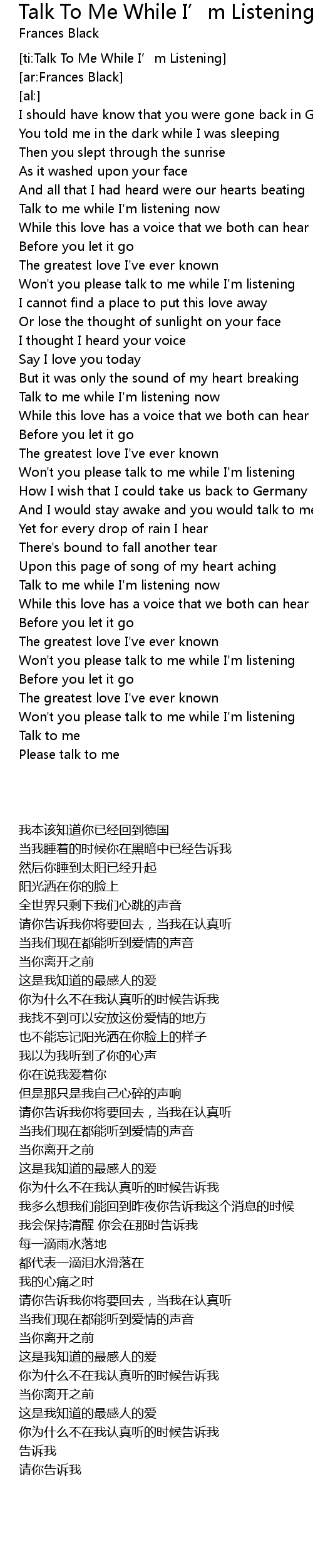 | [01:06.50] | Won't you please talk to me while I'm listening |