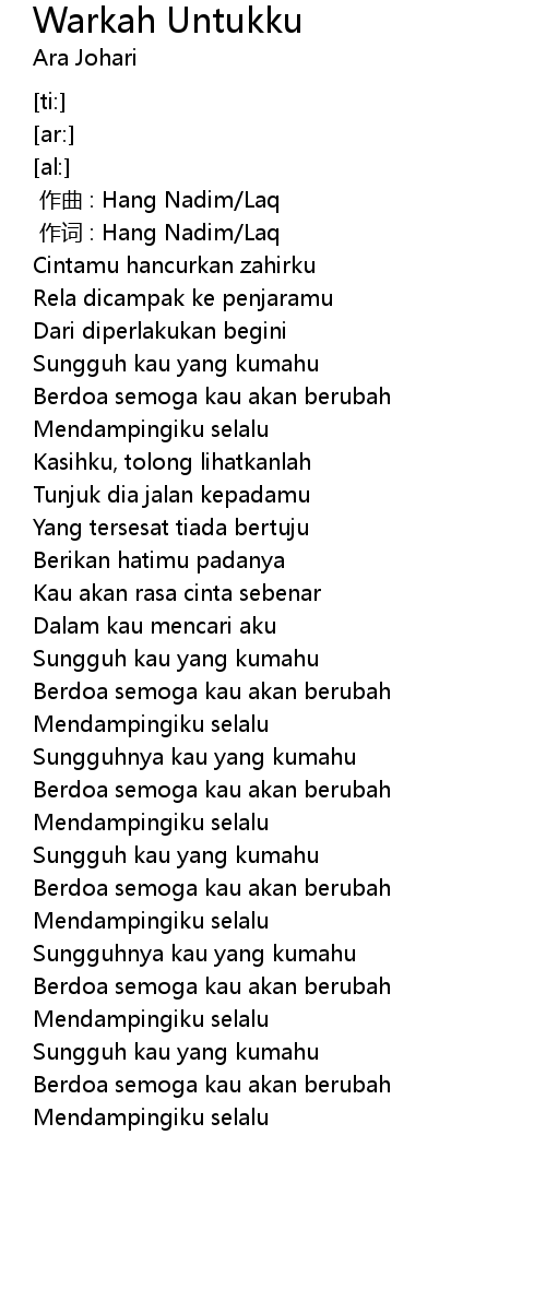 | [00:01.000] | 作词 : Hang Nadim/Laq |