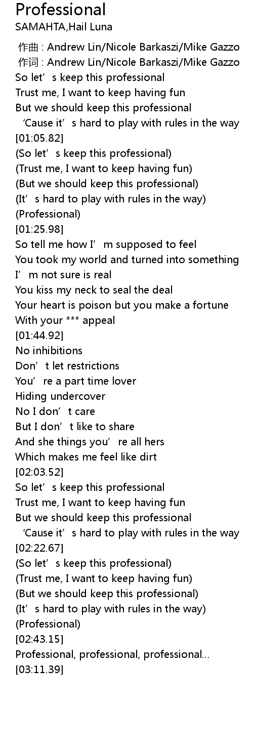 | [00:56.15] | But we should keep this professional |
