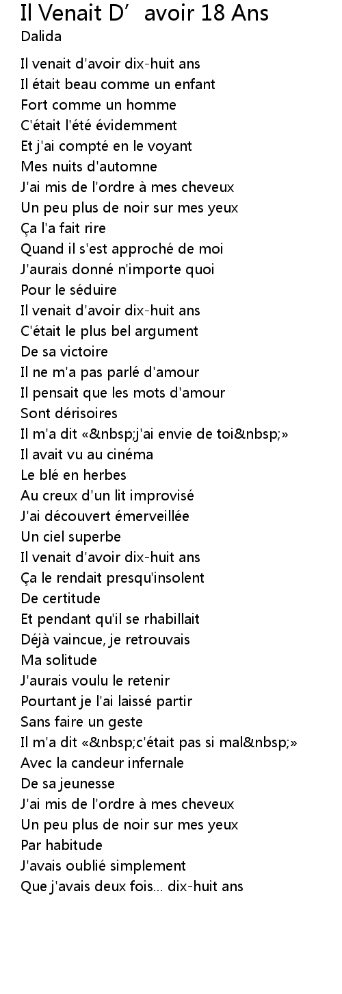 | Song | Il Venait D’avoir 18 Ans |