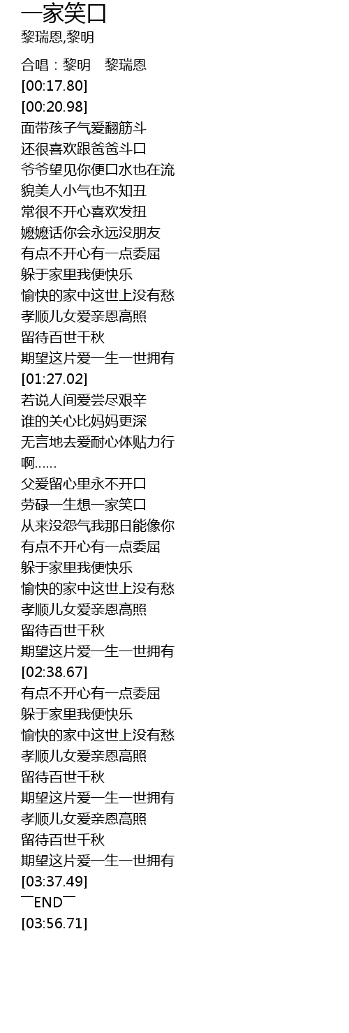 | [01:55.46] | 劳碌一生想一家笑口 |