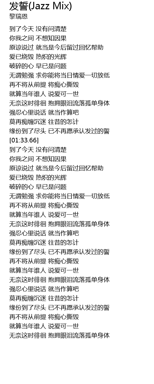 | Song | 发誓(Jazz Mix) |
