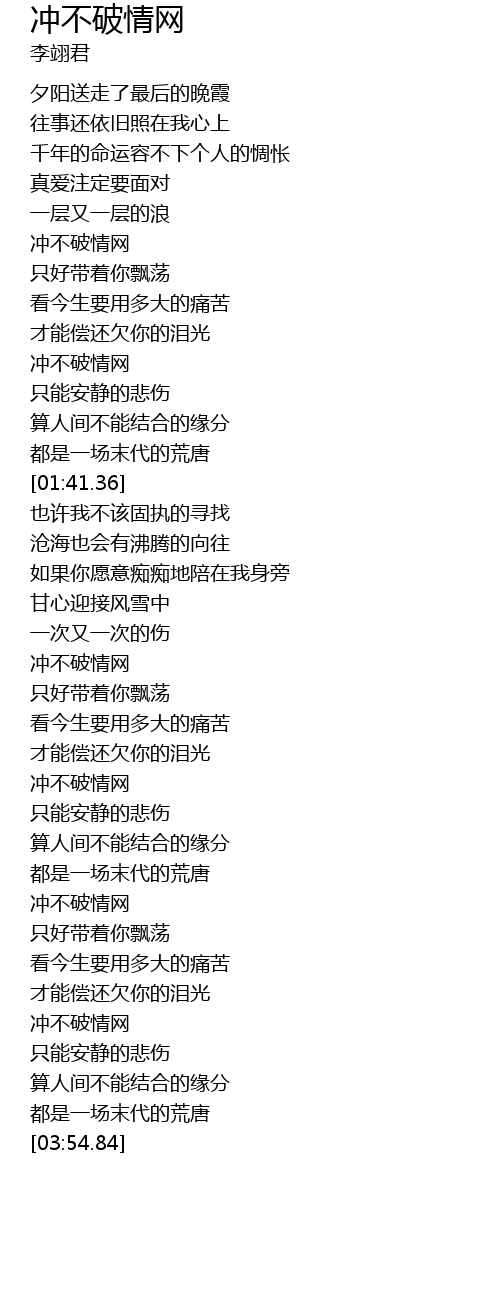 | [01:21.79] | 冲不破情网 |
