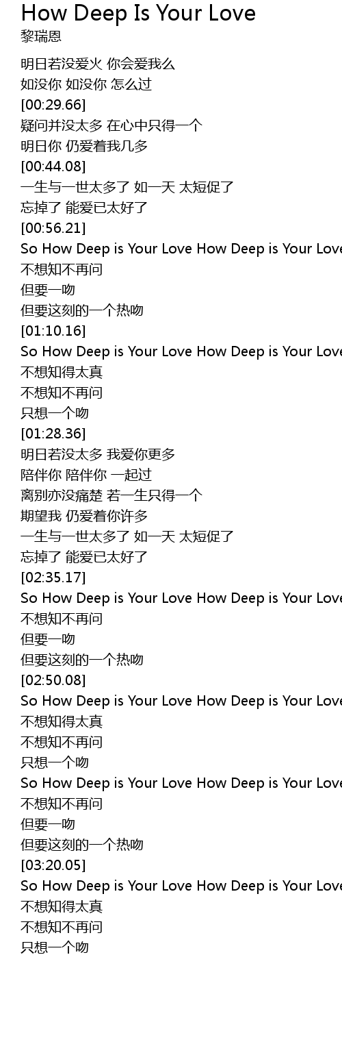 | [00:57.52] | So How Deep is Your Love How Deep is Your Love |