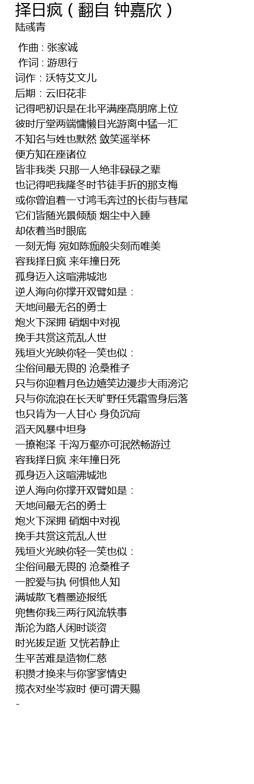 | [02:09.399] | 容我择日疯 来年撞日死 |