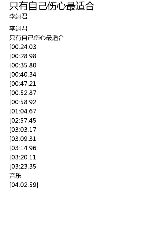 | [03:55.54][03:23.35][01:37.45] | 只有自己伤心最适合 |