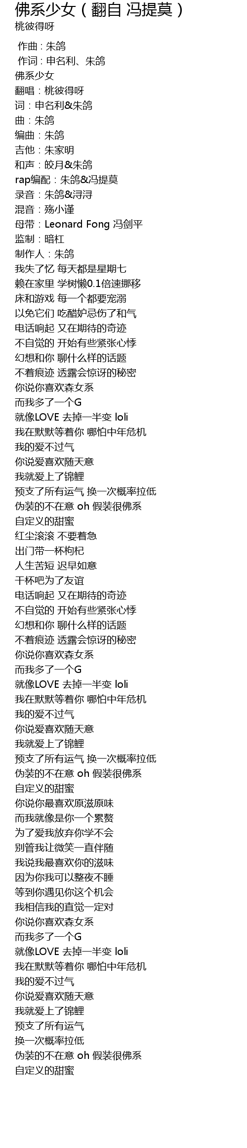 | [00:12.182] | rap编配:朱鸽&冯提莫 |