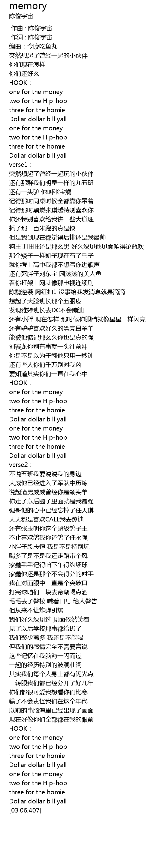 | [00:00.061] | 作词 : 陈俊宇宙 |
