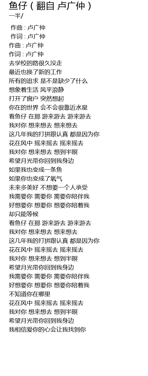 | [00:02.668] | 作词 : 卢广仲 |