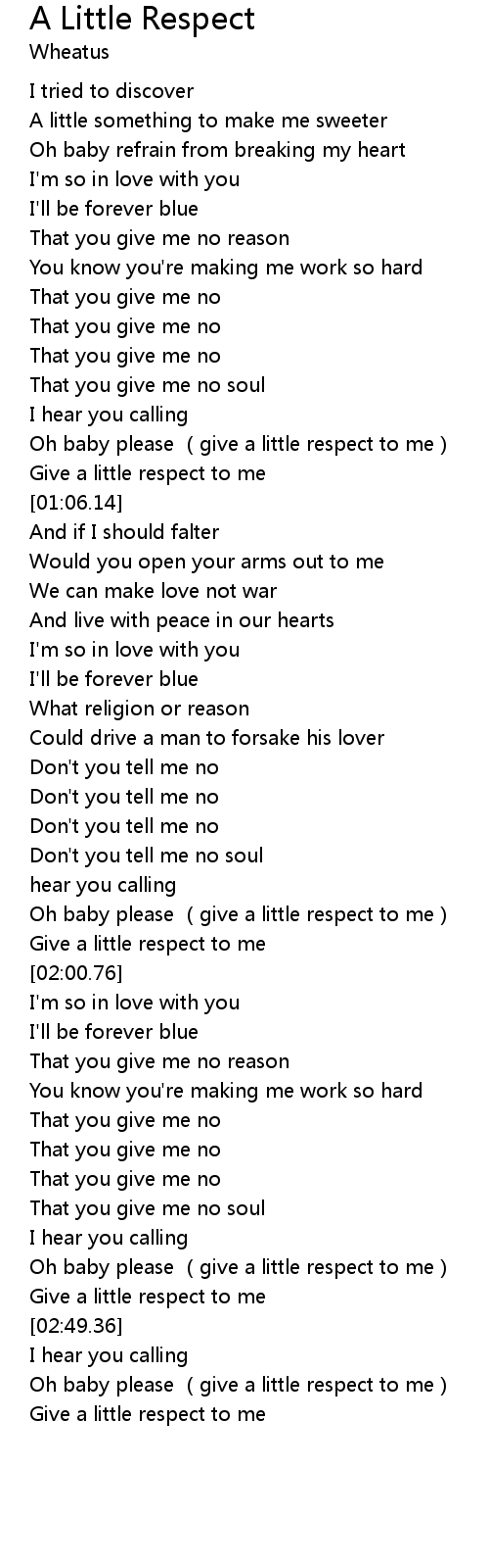 | [00:48.78] | Oh baby please give a little respect to me |
