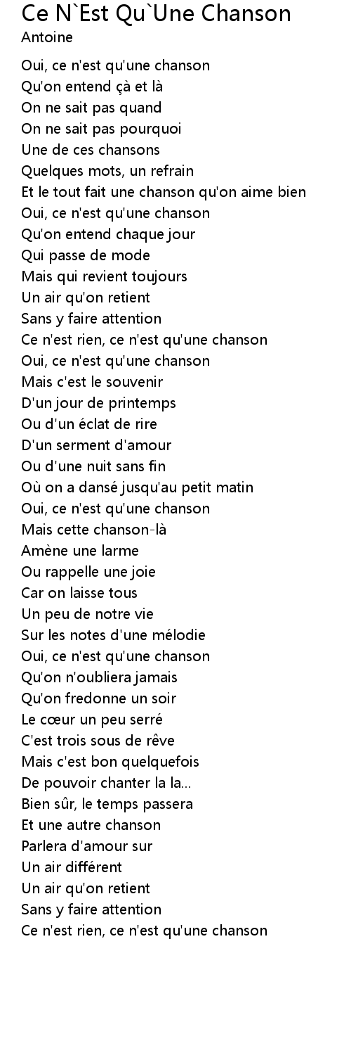 | Ce n' est rien, ce n' est qu' une chanson | |