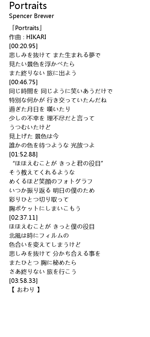 | [01:56.96] | “ほほえむことが きっと君の役目” |