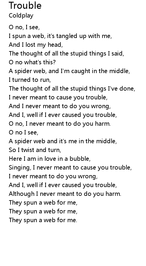 I never meant to cause you trouble, |
