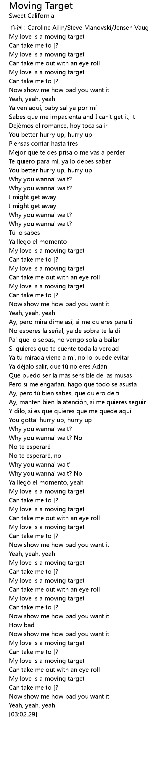 | [02:46.45] | My love is a moving target |