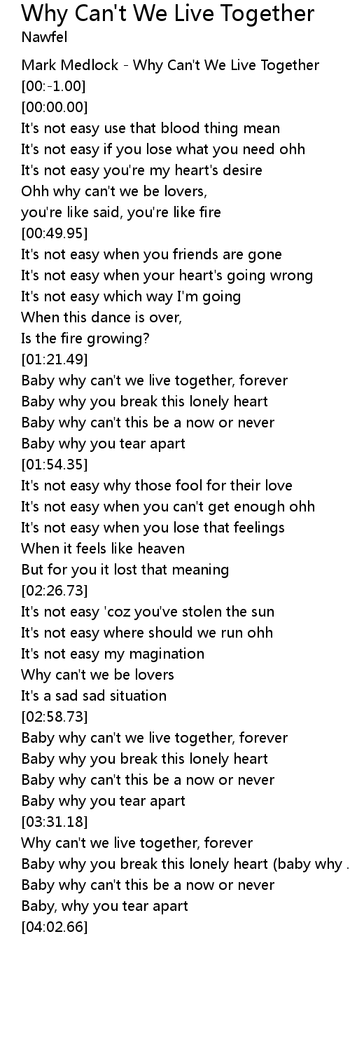 Why can't we live together, forever |