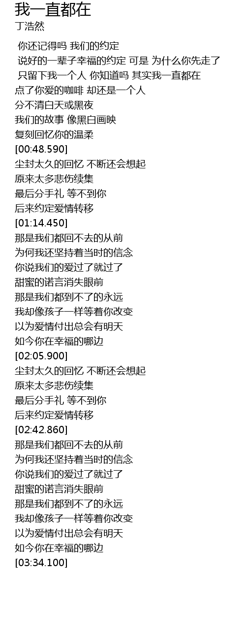 | [00:15.890] | 只留下我一个人 你知道吗 其实我一直都在 |