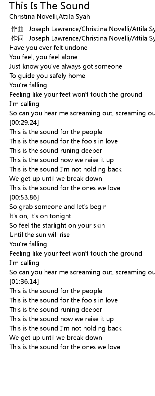 | [00:00.692] | 作词 : Joseph Lawrence/Christina Novelli/Attila Syah Putra |