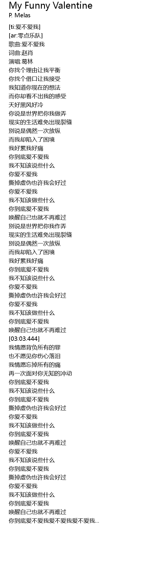 | [05:02.302] | nǐ dào dǐ ài bù ài wǒ ài bù ài wǒ ài bù ài wǒ... |