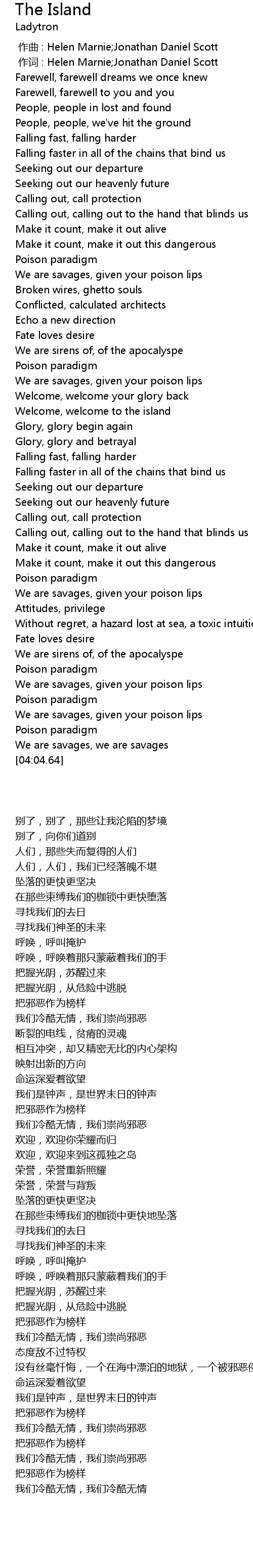 | [03:45.81] | We are savages, given your poison lips |
