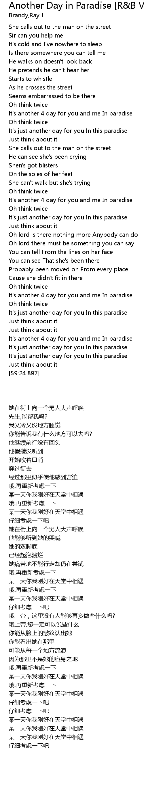 | [01:01.899] | It's another 4 day for you and me In paradise |