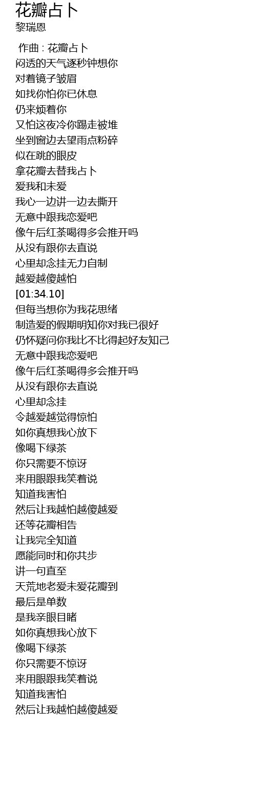 | [00:55.11] | 拿花瓣去替我占卜 |