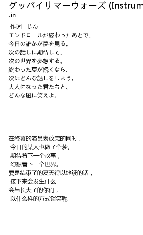 | Song | グッバイサマーウォーズ (Instrumental) |