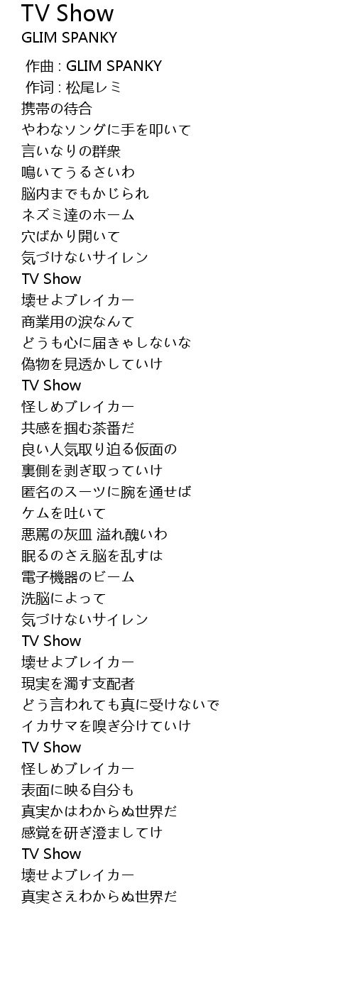 | [00:00.000] | 作曲 : GLIM SPANKY |