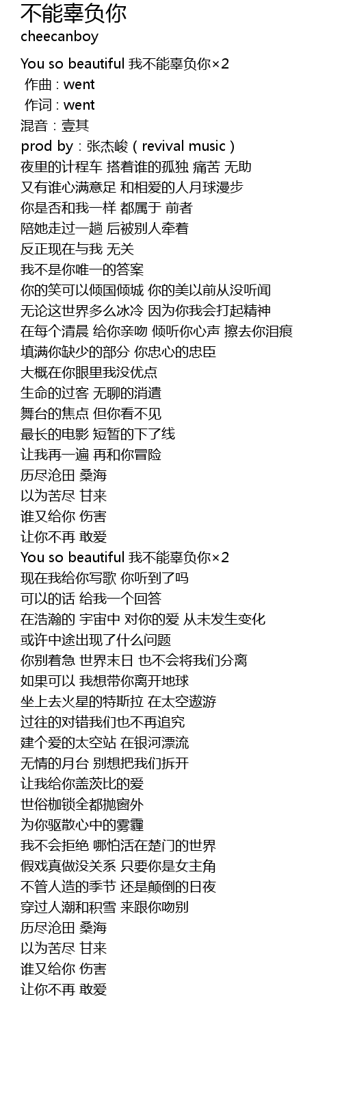 | [01:42.425] | You so beautiful 我不能辜负你×2 |