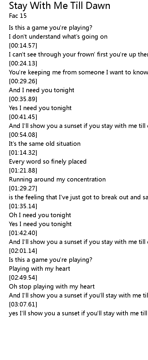 And I'll show you a sunset if you'll stay with me till dawn. |