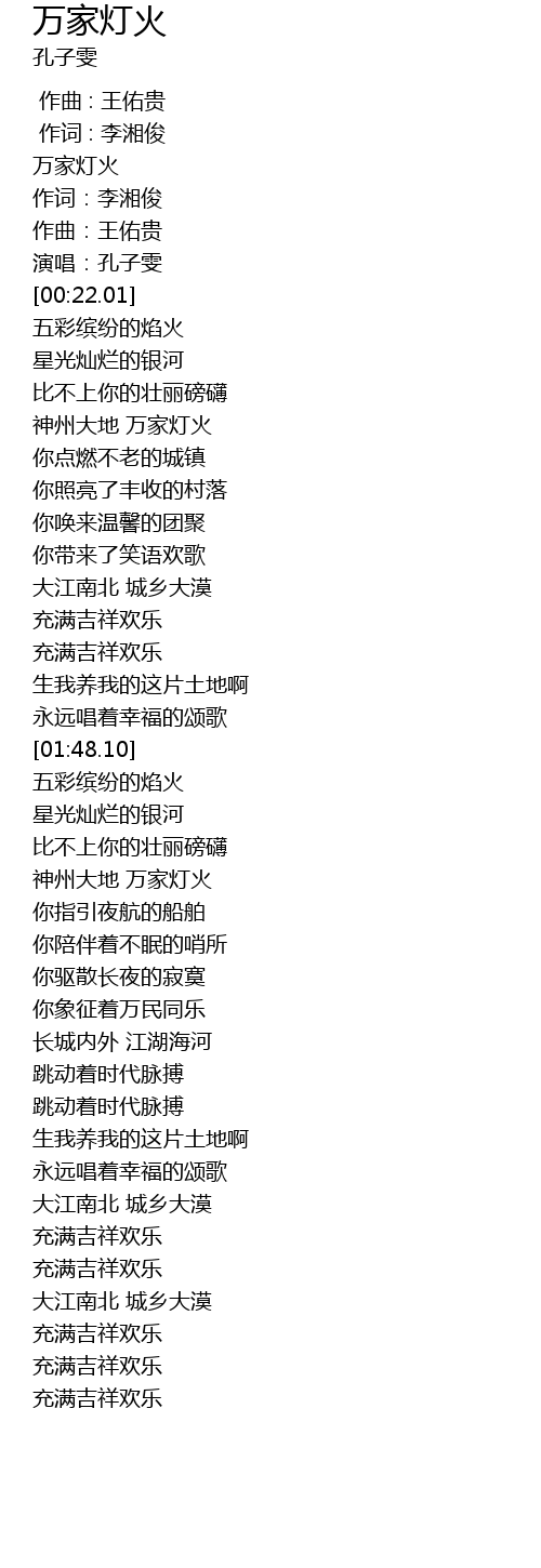 | [00:48.96] | shén zhōu dà dì wàn jiā dēng huǒ |
