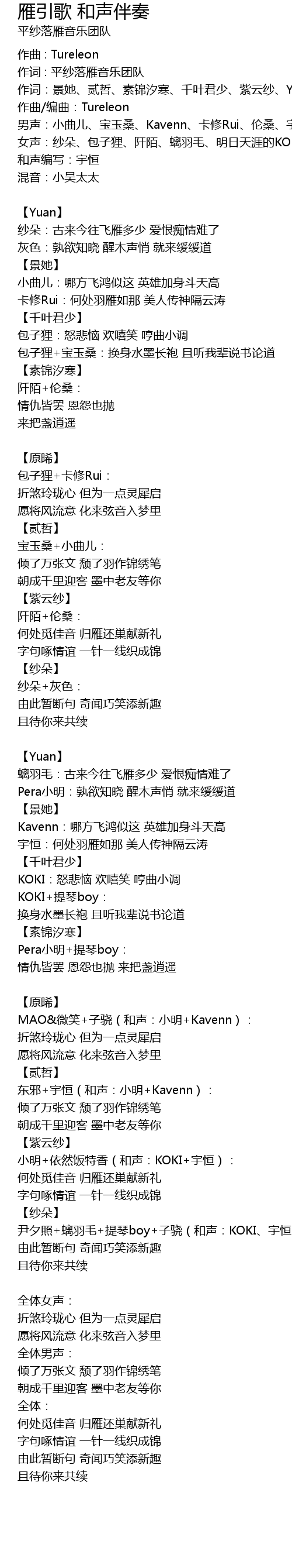 | 作词 : 平纱落雁音乐团队 | |