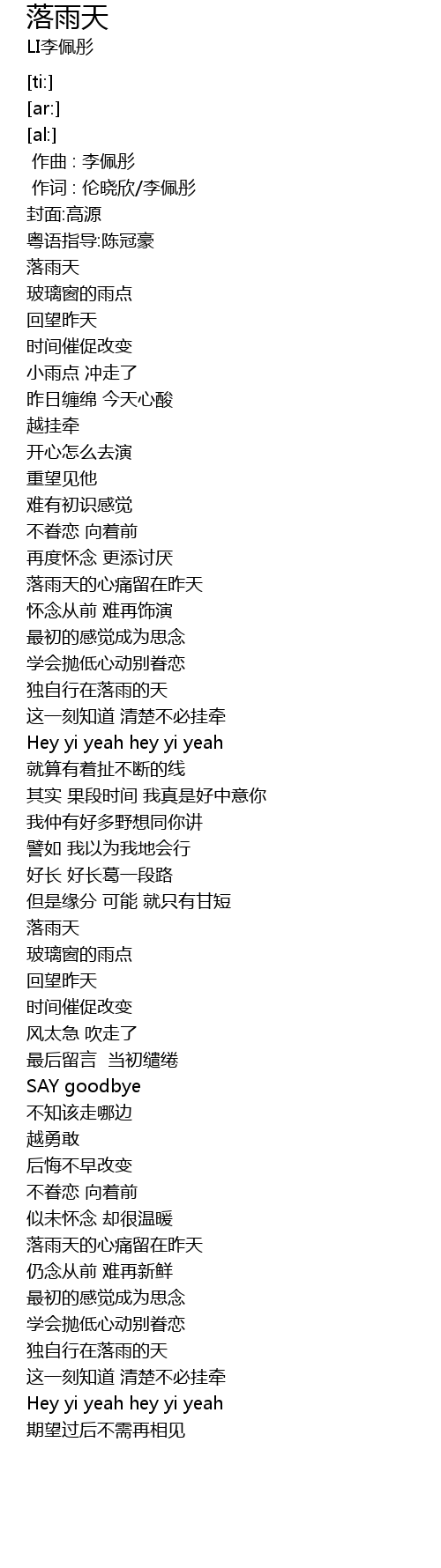 | [00:01.000] | 作词 : 伦晓欣/李佩彤 |