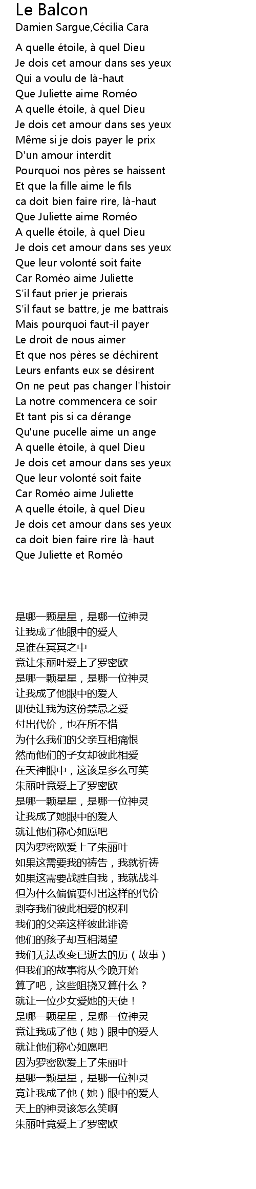 | Song | Le Balcon |