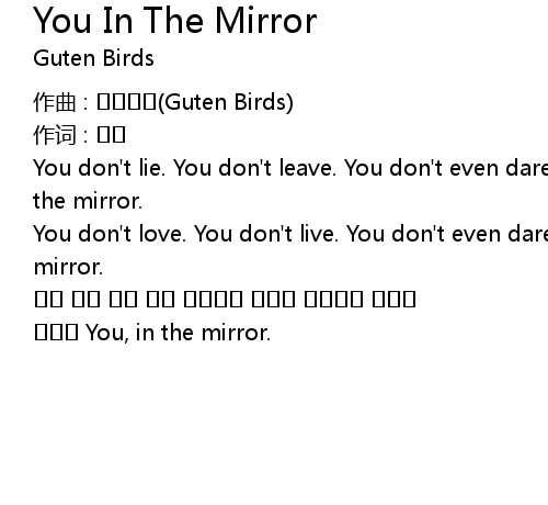 | You don' t lie. You don' t leave. You don' t even dare shout to yourself. You, in the mirror. | |