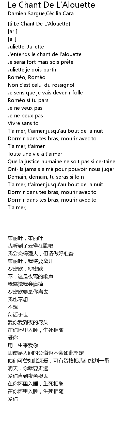 | [01:46.42] | T'aimer, t'aimer jusqu'au bout de la nuit |